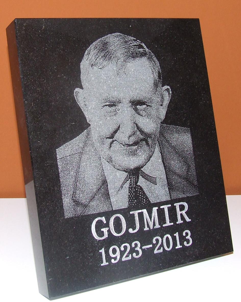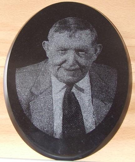 gravirana slika na ovalno ploščico iz granita